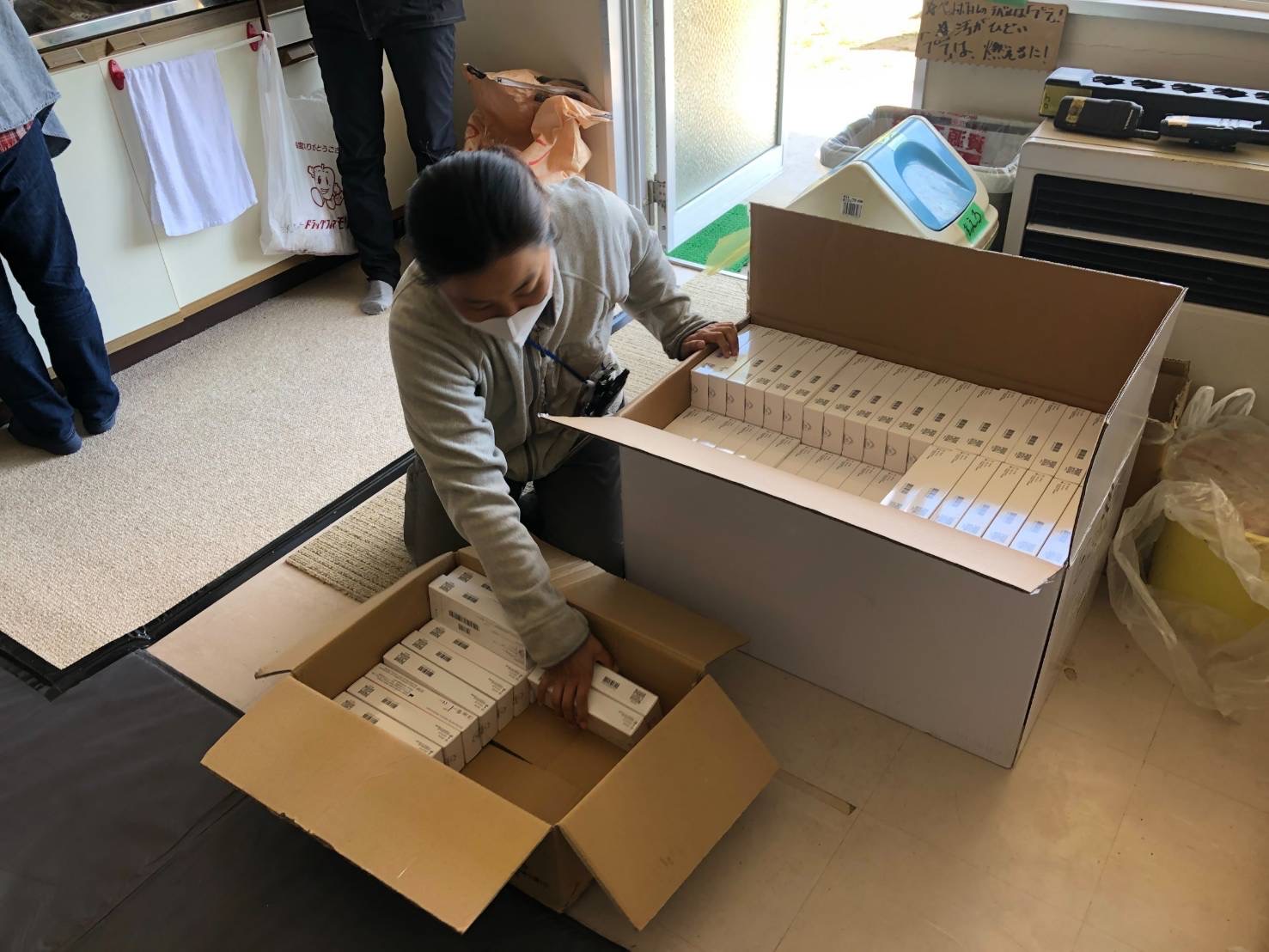 1.被災した屋根の応急処置(ブルーシート展張)の支援を行っている団体は、これまでに約378棟の対応を行ってきました。また、コロナ禍での活動は、住民の方への感染対策に関する配慮も支援者側にとって、とても大切なことです。JVOADは、現地から相談を受け、会員である日本青年会議所にサポートいただき、現地の支援団体向けに、抗原検査キット950個をお届けしました。
