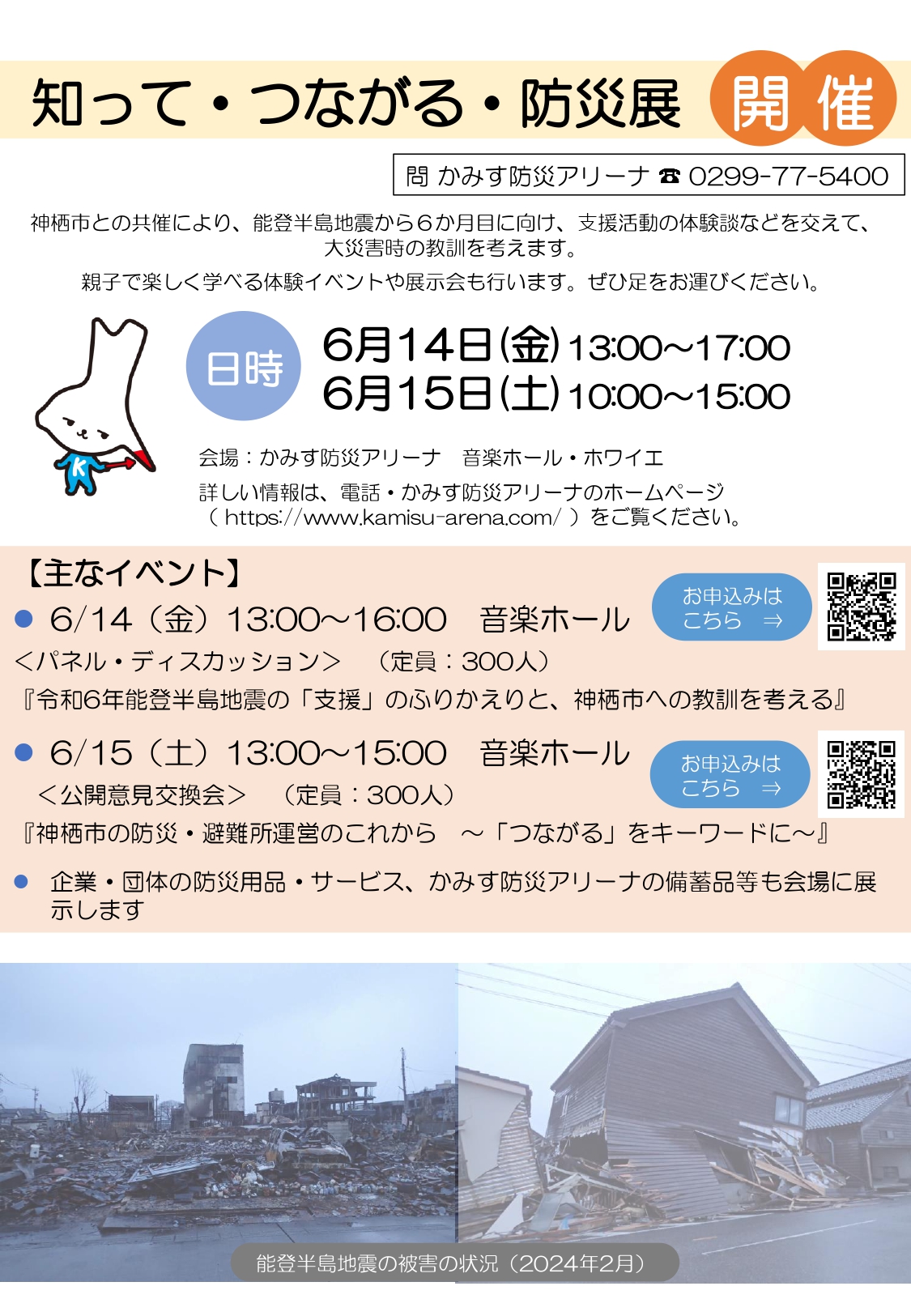 6月14日(金)、15日(土)に茨城県神栖市にて開催されます「知って・つながる・防災展」に、JVOADは両日ともブース出展します。